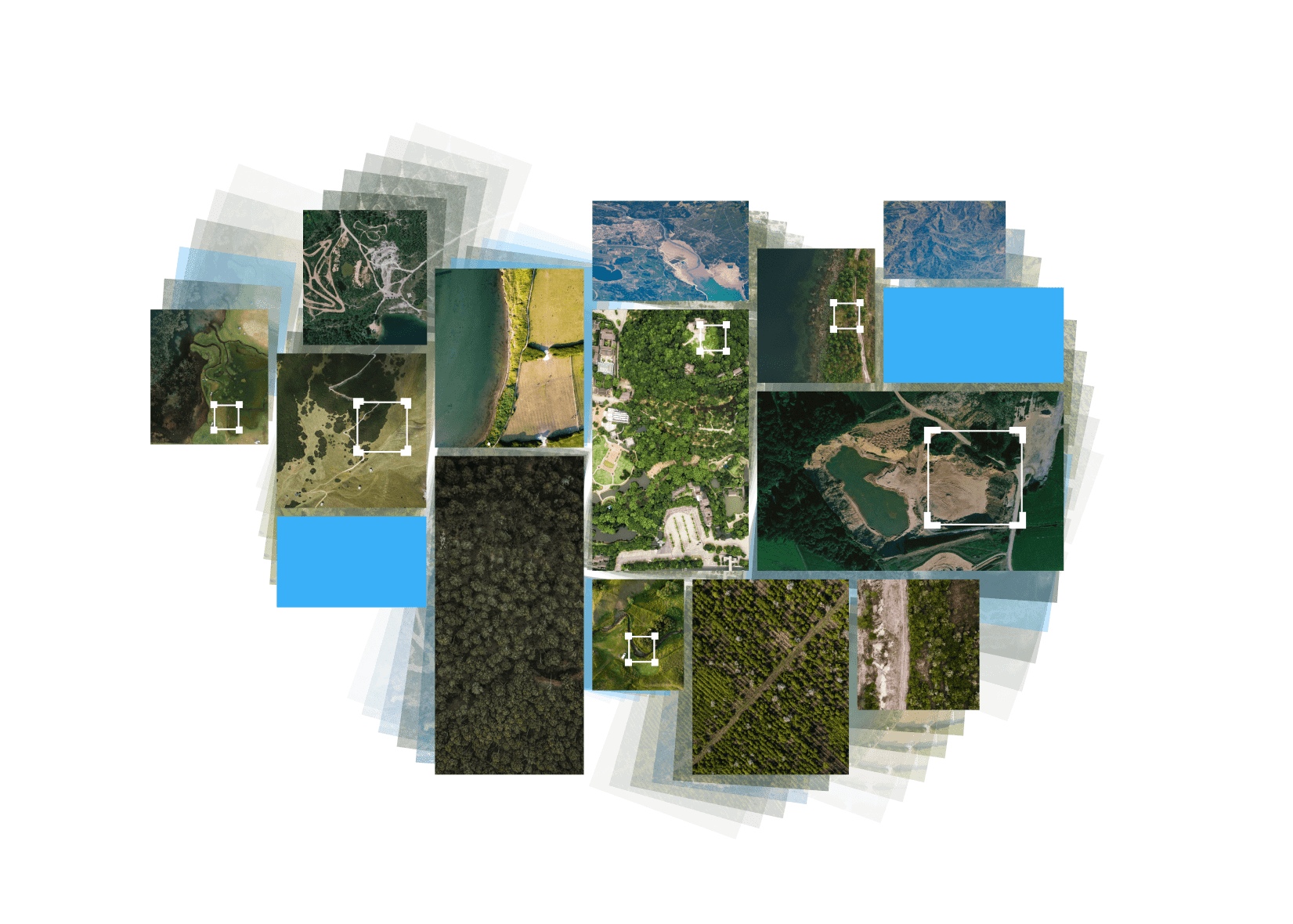 Пашни, объекты капитального строительства, облака, поля, вырубки леса, обгоревшая поверхность земли, лес, овраги, борщевик, скопления мусора, нарушения покровов земли, разливы нефти, зарастающие земли с/х назначения, земельные участки, дороги, карьеры, болота, кроны деревьев, водные объекты, ветровал.