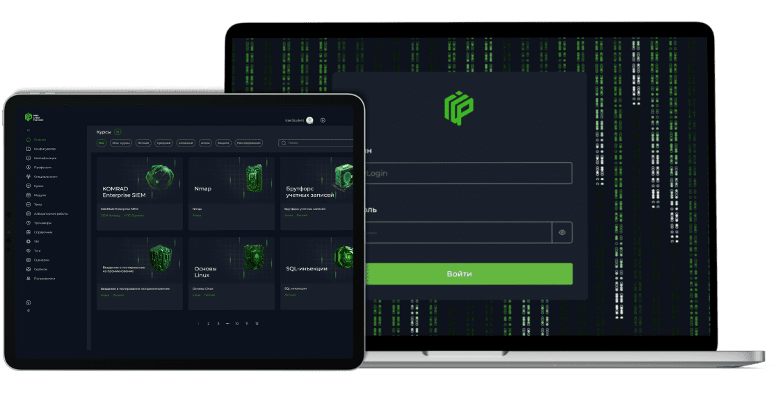 ПО работает с виртуальными машинами внутри браузера, создает виртуальную инфраструктуру предприятия, где сотрудники и студенты обучаются защите и ищут уязвимости. Включает в себя курсы, тренажеры и киберучения.